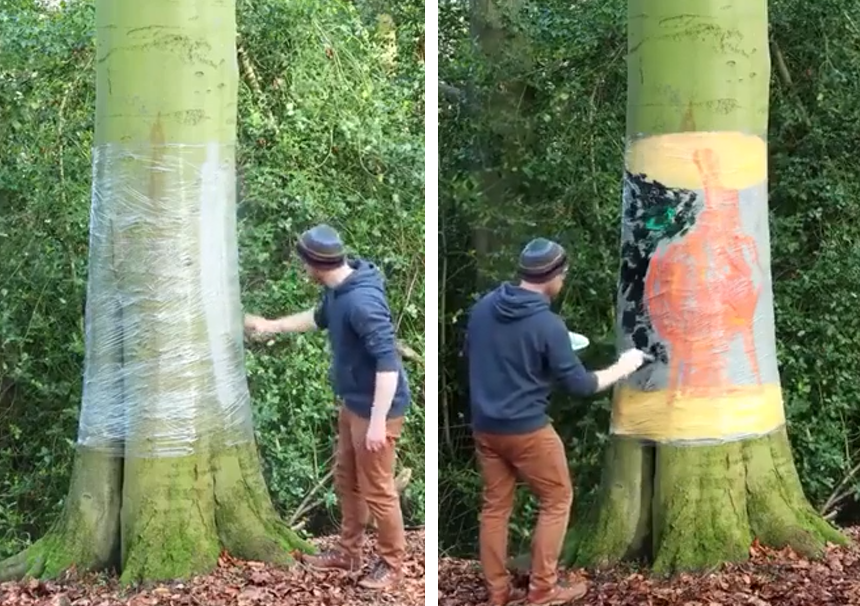 Howard Lee est un artiste talentueux qui se sert de papier film pour créer une illusion d’optique. Cette technique comporte beaucoup de difficulté. Ce matériau possède une texture lisse et élastique. Peindre correctement sur une telle surface n’est pas simple, sans compter qu’il réalise son œuvre sur le tronc d’un arbre.