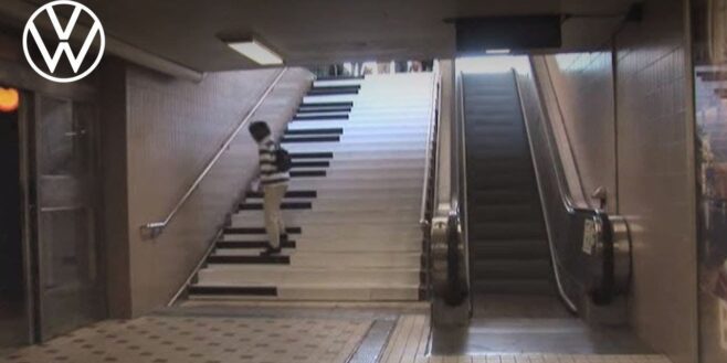 L’idée originale fut de connecter des sons de touches de piano sur des marches d’une entrée de métro. Avec la couleur du piano, les utilisateurs, interloqués, ont été amusé par ce nouveau système.
