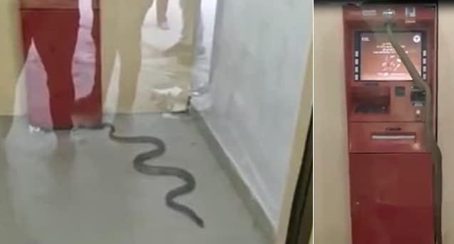 Un serpent s’est faufilé dans un guichet automatique, créant la panique chez les clients ayant assisté à la scène, qui ont déclenché l’alarme. Enfermé par le garde à l’intérieur de la cabine, le serpent est entré à l’intérieur de la machine.