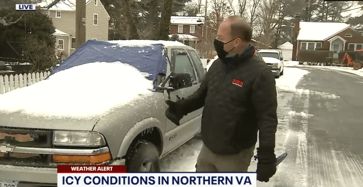 Sur Fox 5, le journaliste Bob Barnard participe au live pour transmettre la situation en Virginie du Nord qui profite tout de même d’une certaine clémence, car la neige est moins épaisse et la route affichée à l’écran reste praticable.