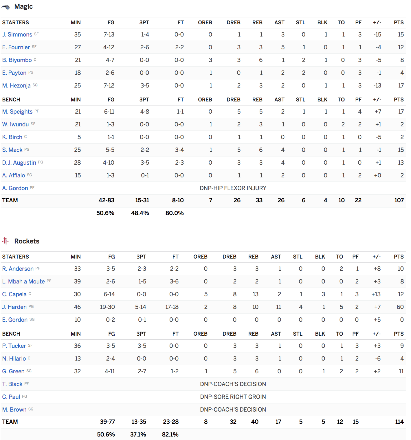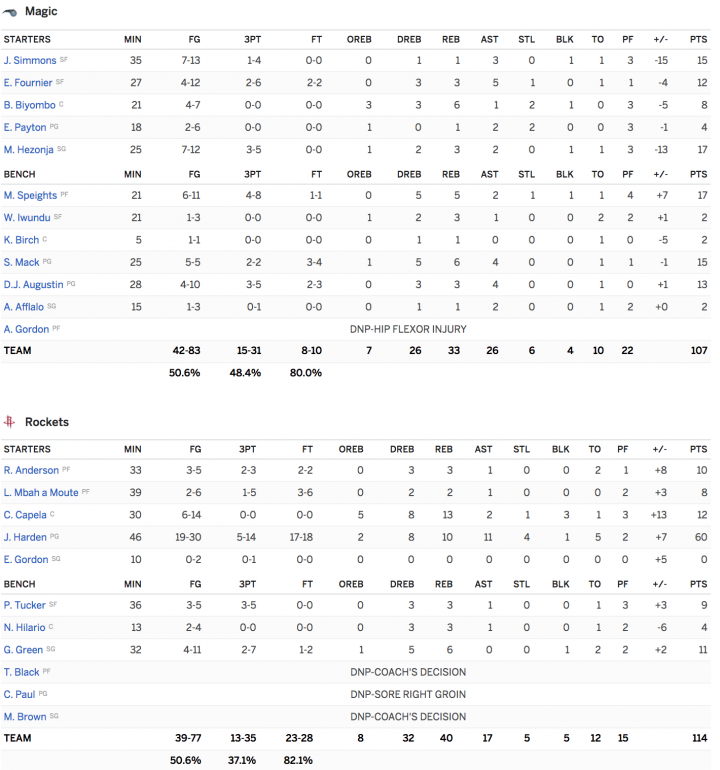 Harden a marqué 18 points dans le quatrième quart pour éclipser les 57 points marqués par Calvin Murphy en 1978,e l’ancien record désormais de Houston. Le match était à égalité à 107 partout après un panier de Marreese Speights avec un peu moins de quatre minutes à jouer. Aucune des deux équipes n’a marqué pendant plus de deux minutes. James Harden a pris ensuite le dessus, marquant les six points suivants pour atteindre 113-107 avec 45 secondes à jouer.