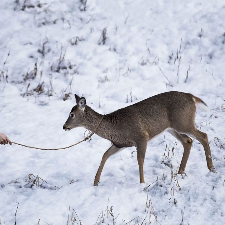 Les scènes des photos proposent des récits improbables dans lesquels le genre et les méthodes de la photographie humaine et animalière sont impliqués