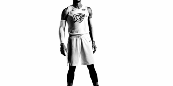 Bien évidemment, c’est Russel Westbrook, l’égérie de la filiale de Nike, qui a été choisi pour la présentation des maillots.