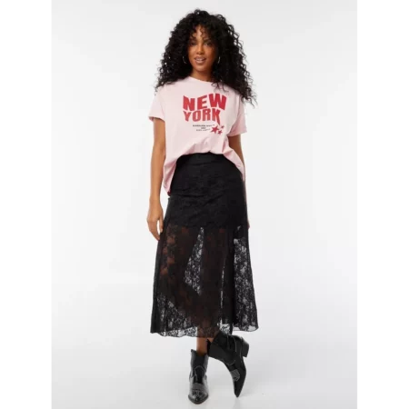 La mode continue d’ailleurs de lui rendre hommage. La jupe en dentelle signée Kiabi s’inscrit pleinement dans cette mouvance. À mi-chemin entre le romantisme et l’esprit rebelle, cette pièce séduit par sa coupe midi évasée qui affine et allonge les jambes tout en soulignant la taille.