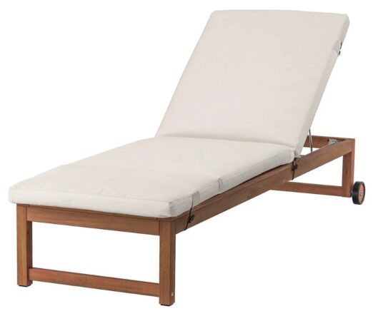 Ikea mise sur une structure en bois élégante et épurée. Celle ci permet alors de garder un style naturel dans votre jardin. De quoi changer des chaises longues en plastique que l’on connait tous.