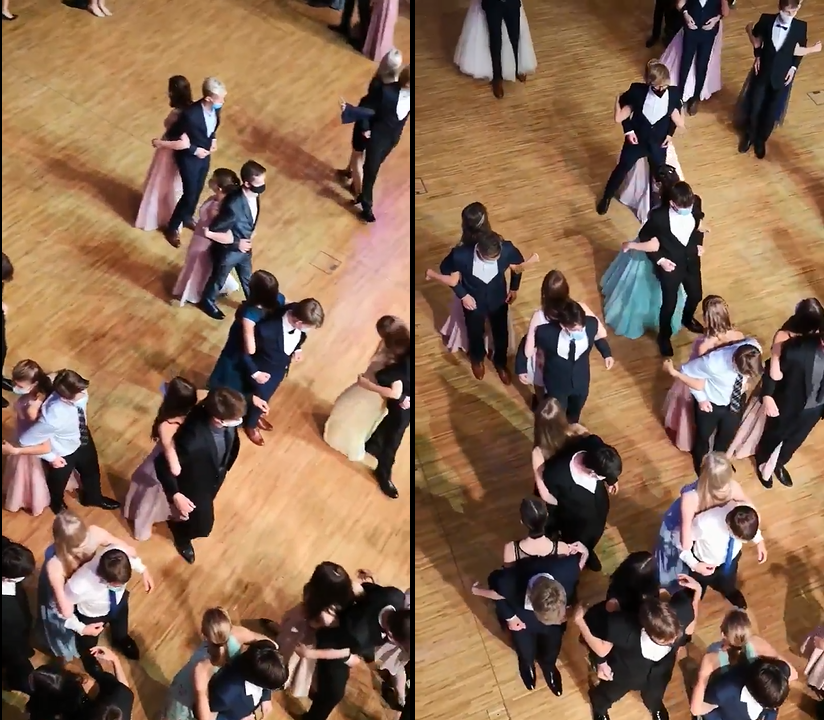Dans un bal de promo en République tchèque, les étudiants se lancent dans un défi assez bizarre : danser en mode Covid 19. Cette pandémie n’a pas réussi à interdire ce rendez-vous tant attendu par les jeunes. Malgré tout, des mesures ont été prises et cette vidéo nous le prouve largement. Cette danse évite de se toucher les mains et d’être face à face, une posture qui augmente les risques de contamination. Le covid-décalé est une solution amusante qui permet ainsi de se donner rendez-vous sur la piste de danse tout en se protégeant.