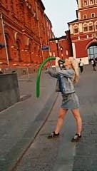 Une jeune femme tente un magic trick pour nous faire disparaitre ce ballon en forme de saucisse. Une gorge profonde exceptionnelle. Comment fait-elle ?