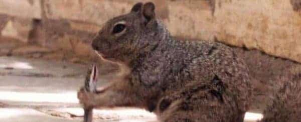 « Les écureuils des rochers mangent surtout des plantes, des fruits et des noix, mais ne vous laissez pas tromper par leur humble apparence. Ils mangent aussi des œufs d’oiseaux, des lézards et des serpents »
