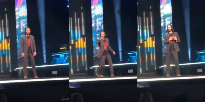 Keanu Reeves a parlé lors de la conférence de présentation du jeu à l’E3, le 9 juin, pour annoncer sa présence dans le jeu “Cyberpunk 2077”.