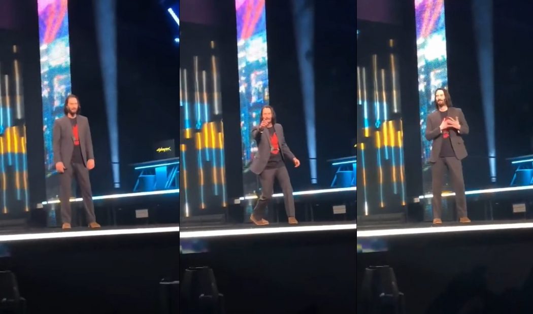 Keanu Reeves a parlé lors de la conférence de présentation du jeu à l’E3, le 9 juin, pour annoncer sa présence dans le jeu “Cyberpunk 2077”.