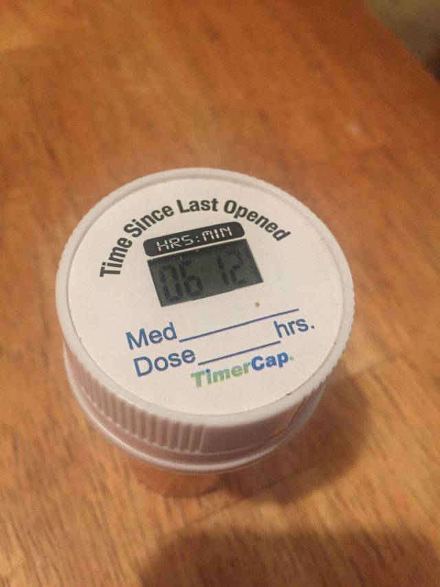 Le couvercle de cette boîte de médicament est bien pratique. L’indication de la dernière prise sert de bon rappel.