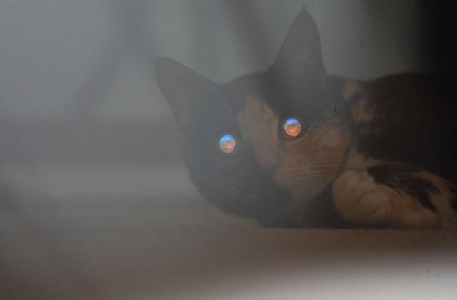 Une image prise au bon moment. On peut voir le reflet dans les yeux du chat.