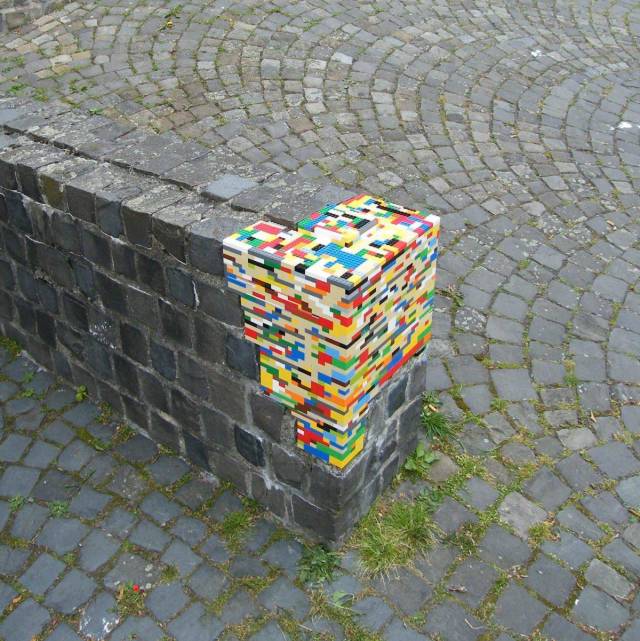 Une façon originale de réparer un mur cassé. Il suffit de combler le vide avec des briques de legos, puis ça rajoute de la couleur.