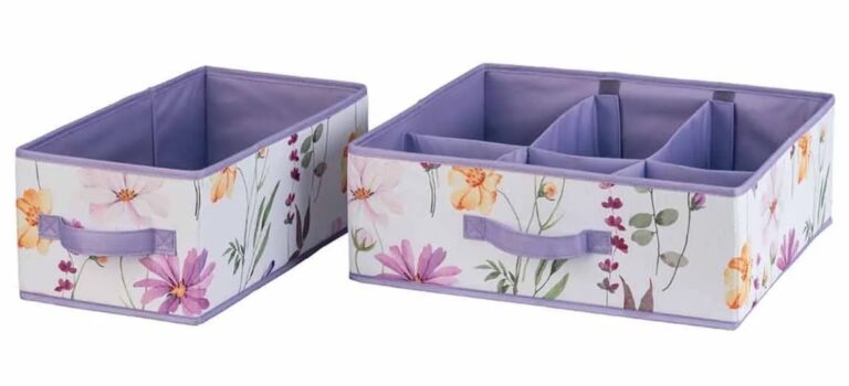 Sachez d’ailleurs que ces compartiments sont disponibles en deux coloris. À savoir : en blanc ou avec un imprimé floral multicolore et des bords violets. Vous pouvez d’ailleurs le trouver à prix très accessible pour tous les budgets.