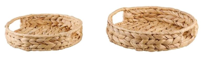 Ou encore sur le comptoir de la salle de bain ou sur la table basse du salon. Les deux sont fabriqués à la main avec un tissu dense de jacinthe d’eau naturelle. Ils ont aussi un profil métallique complet.