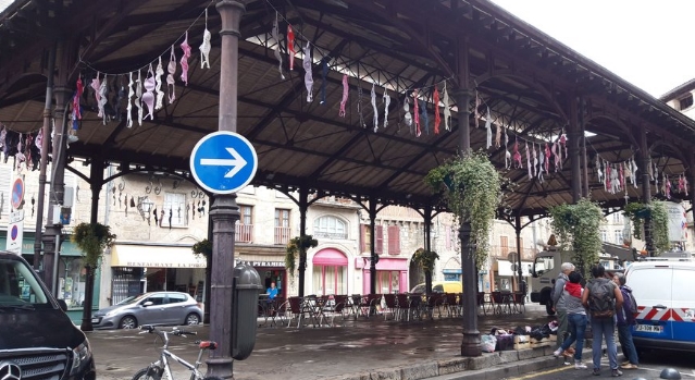 300 soutiens-gorge ont été accrochés autour du hall de Figeac pour se mobiliser contre le cancer du sein.