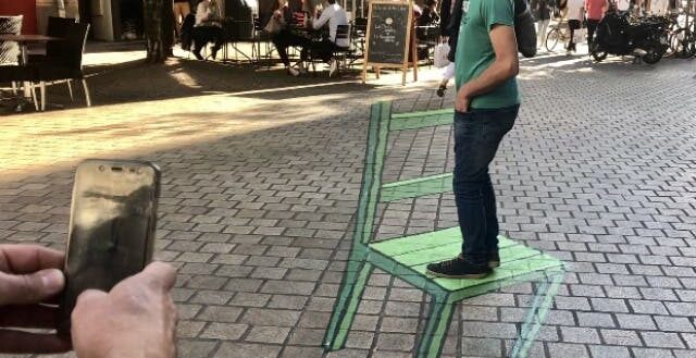 Ces derniers jours, les rues du centre-ville de Nantes sont animées par des passants qui s’amusent avec des dessins d’illusions optiques sur les pavés.