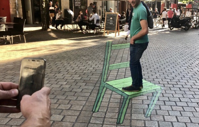 Ces derniers jours, les rues du centre-ville de Nantes sont animées par des passants qui s’amusent avec des dessins d’illusions optiques sur les pavés.