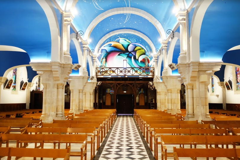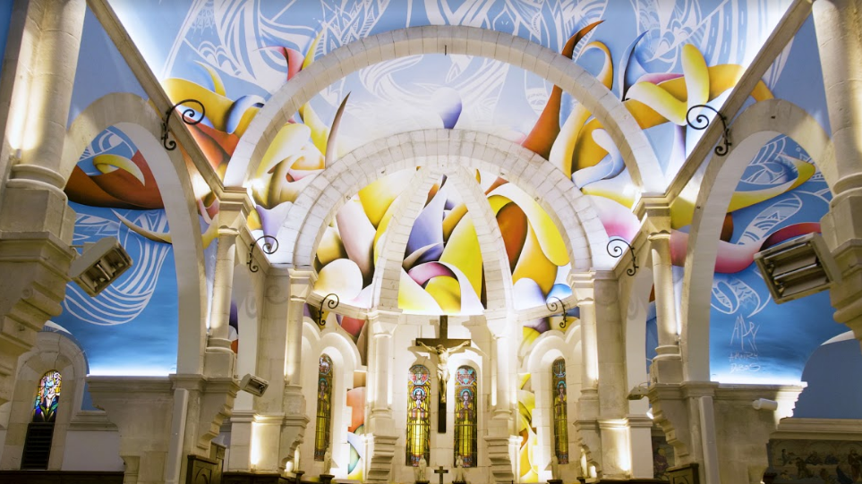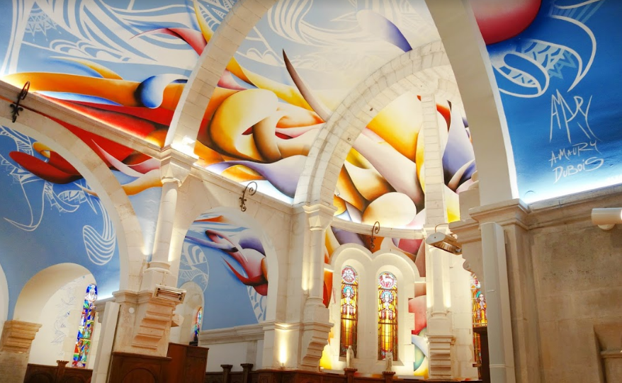 À La Rochelle, une église vient de passer sous les pinceaux de l’artiste contemporain Amaury Dubois. L’œuvre ne passe pas inaperçue dans cette église Sainte-Madeleine de Châtelaillon-Plage, datant du 19e siècle. L’artiste français a été sollicité par la mairie pour donner un coup d’éclat à la voûte, au chœur et aux vitraux de l’église. Le travail a duré deux mois et il a fallu refaire une surface de 600 m2. L’homme a réalisé une œuvre exceptionnelle et unique en son genre en France, une première dans le pays.