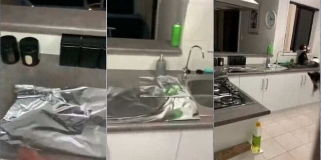Dans la vidéo, on voit l’homme mettre des papiers aluminium sur la paillasse de son cuisine. Et il s’est caché pour que son chat ne le voie pas. Puis, le félin a sauté sur la paillasse et a marché sur le papier aluminium et ce dernier a fait un bruit comme une arme qui sort un coup de feu. Et l’animal a fait demi-tour. Dans la séquence, on entend l’homme rit.