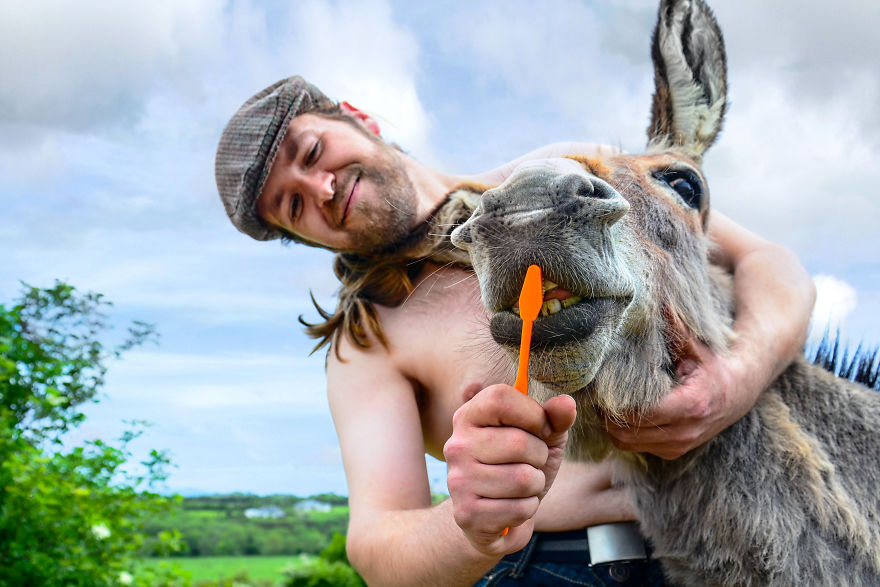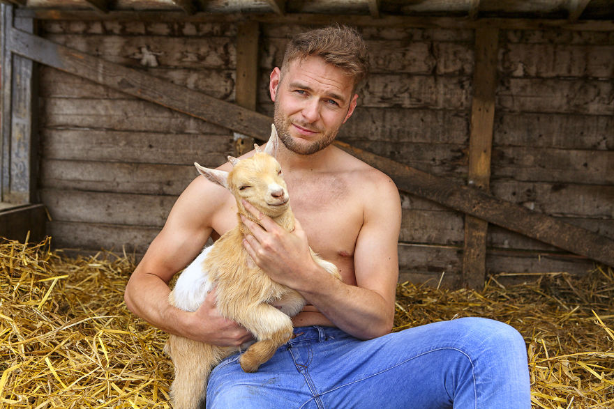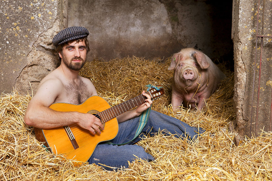 Le calendrier des fermiers irlandais est connu pour soutenir “Bothar” qui a pour objectif d’envoyer du bétail dans des pays en développement. Des fermiers y participent donc en prenant une pose – amusante avec un occupant de la ferme.