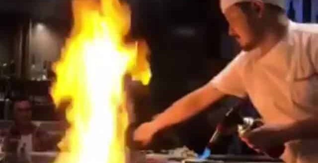 Mais plus tôt cette semaine, un autre chef est devenu viral pour un truc un peu plus dangereux : déclencher une flamme énorme qui a rapidement déclenché le système anti incendie du restaurant, trempant ses invités.