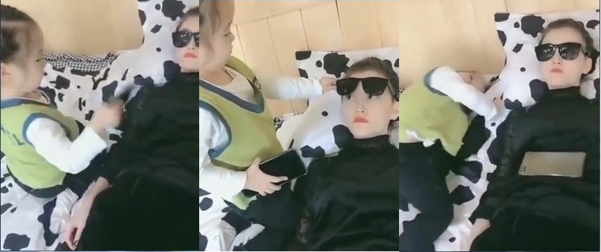 Dans cette vidéo, une mère de famille est en train de faire la sieste, elle porte une lunette de soleil.. Sa petite fille s’allonge à côté d’elle mais la gamine a quelque chose en tête : prendre le téléphone de sa mère. L’objet se trouvait sur le ventre de la maman. La petite prend avec hésitation le téléphone de sa mère. Et une fois que la gamine a eu ce qu’elle voulait, elle a vérifié si sa maman dort vraiment en enlevant la lunette. La mère a en fait les yeux grands ouverts et elle observait sa fille. Et comme une petite fille sage, elle a posé le téléphone et elle s’est allongée à nouveau.