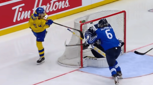 Lors du match contre la Finlande, à l’occasion du Championnat du monde junior de hockey sur glace, l’ailier droit Nils Höglander a réalisé un but façon lacrosse en portant le palet avec sa crosse.