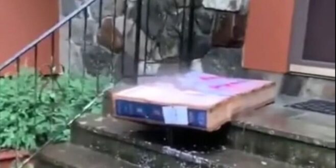 Un homme commande un TV et se fait livrer à domicile. Absent lors de la livraison, il retrouve sa commande toute trempée devant sa porte.