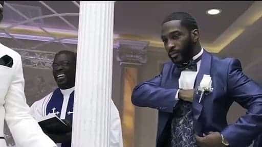 Dans cette vidéo, on peut voir quel e témoin cherche désespérément la bague dans son costume, ce qui crée un moment de malaise.