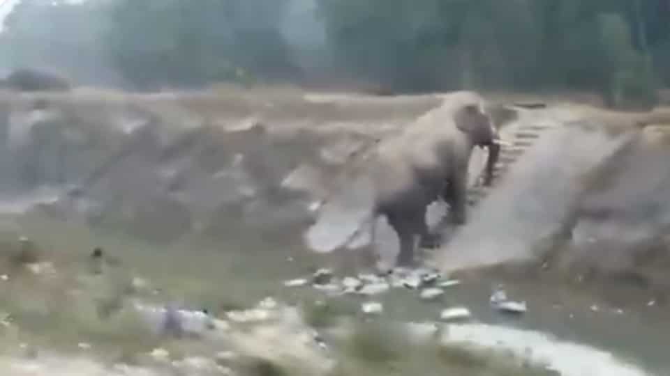 La vidéo montre un éléphant adulte escaladant quelques escaliers étroits pour atteindre une route surélevée. Après avoir atteint le sommet, il prend un moment et regarde en arrière. La vidéo est devenue virale sur les réseaux sociaux.