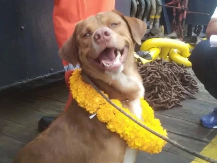 Malheureusement, à cause de circonstances inconnues, un chien s’est retrouvé en mer. Il était situé à près de 200 kilomètres de la plage en Thaïlande, lorsqu’il a été secouru.