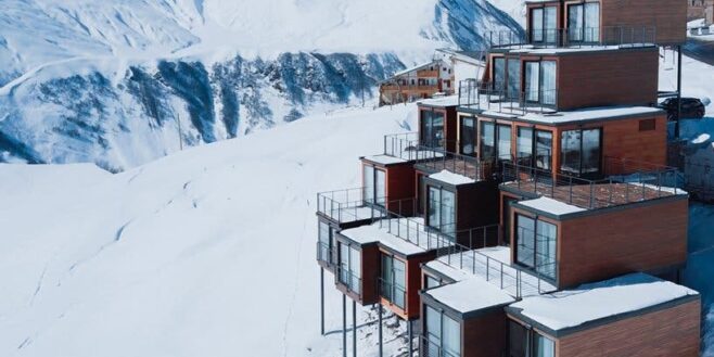 Le quadrum est un hôtel boutique écologique qui se trouve sur les montagnes du Caucase. Son concept écologique n’affecte pas l’environnement. Situé à 2200 m en haute Gudauri, il offre une vue magnifique.