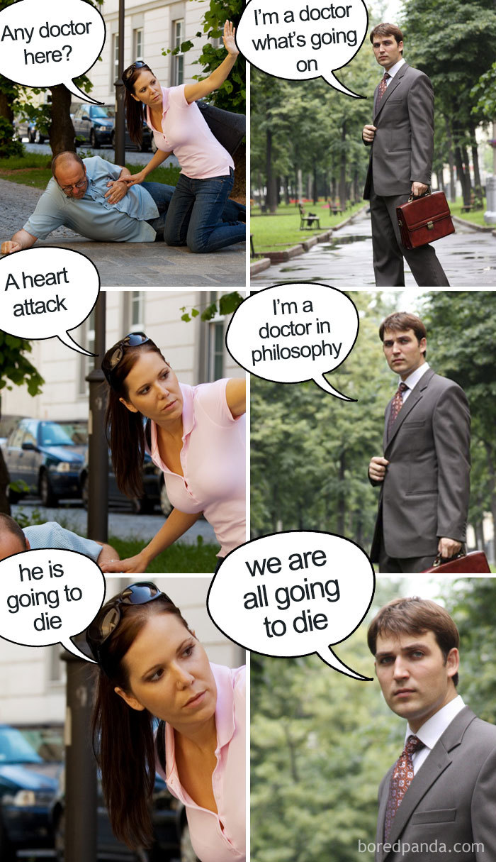 Docteur : J’ai une mauvaise et une terrible nouvelle. La mauvaise, c’est qu’il vous reste 24 heures à vivre.