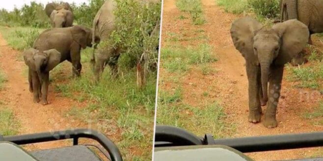 Les bébés éléphants quant à eux sont très autonomes même s’ils grandissent auprès de leur mère. En plus d’être impressionnant, ils peuvent aussi être très mignons. Comme c’est le cas de ce petit bébé éléphant qui est tombé sur un camion de safari.