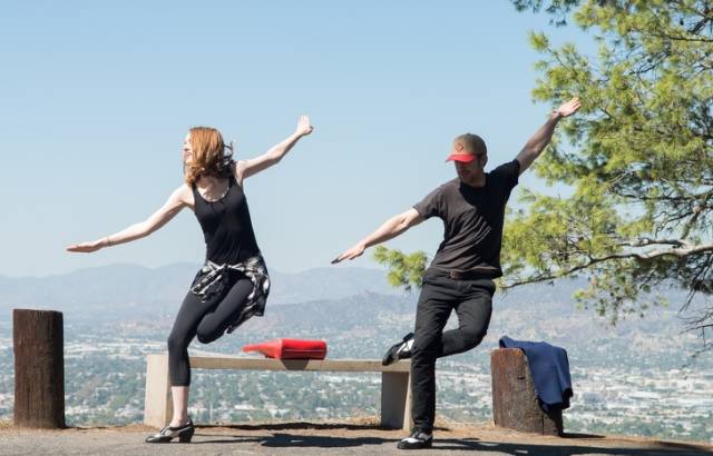 Emma Stone et Ryan Gosling en train de répéter une danse sur le tournage de La La La Land