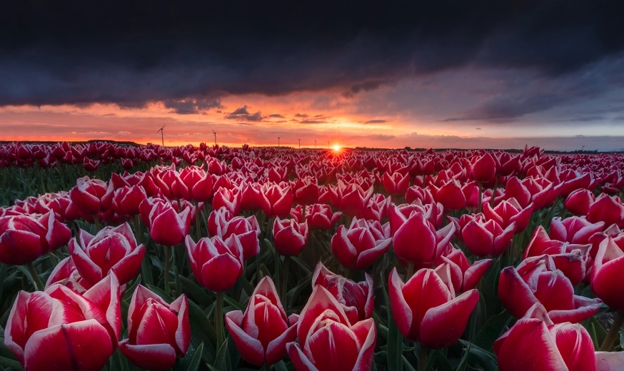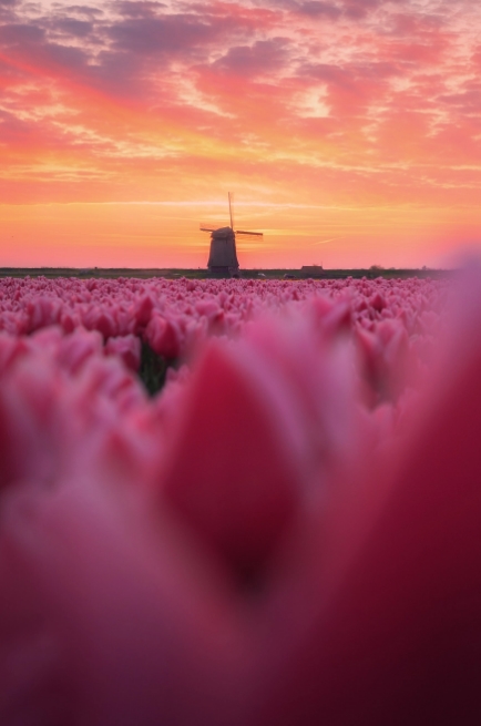 Chaque année, les champs de tulipes des Pays-Bas attirent des millions de visiteurs à cause de leur beauté. Pour cette saison 2019, un photographe a su prendre en photo la magnifique floraison de ce champ.