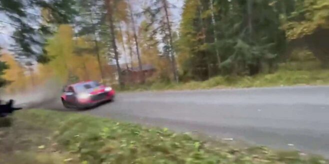 Best of des images du dernier rallye WRC de Finlande, avec des bolides passant à de très haute vitesse près de ces fans de rallye.