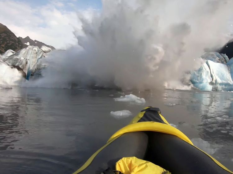 C’est lors de cette excursion de camping et de kayak qu’ils ont réussi à capturer une vidéo dramatique de l’effondrement du glacier. La vidéo montre des morceaux de glace se brisant dans l’eau, envoyant une énorme vague dans leur direction. L’effondrement a contraint les deux hommes à se retirer en toute sécurité en pagayant furieusement.