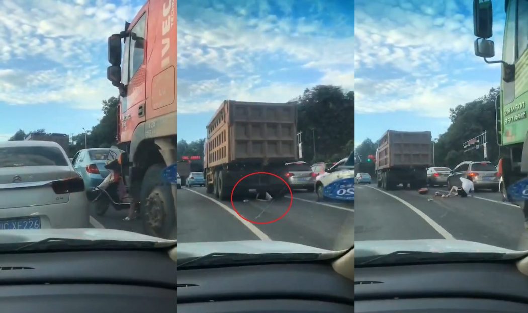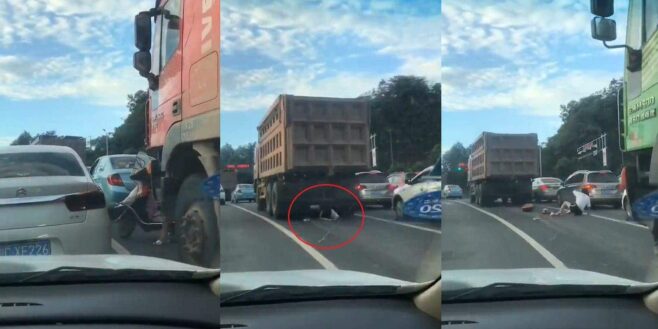 Un horrible accident a été filmé par un homme lors d’un mauvais embouteillage au centre d’une ville en Asie.