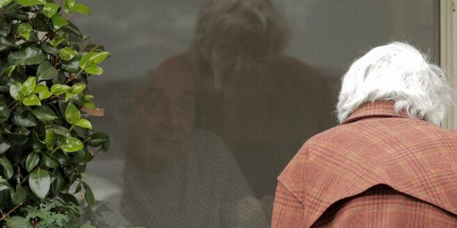 L’expression de tristesse de la retraitée se reflète clairement sur la vitre.