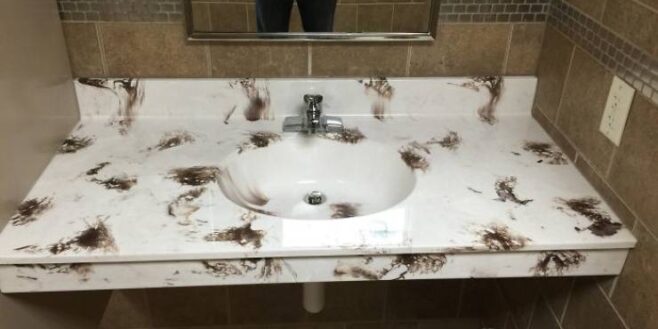 Pas exactement le genre de motif ou de couleur que l’on souhaite voir dans une salle de bain.