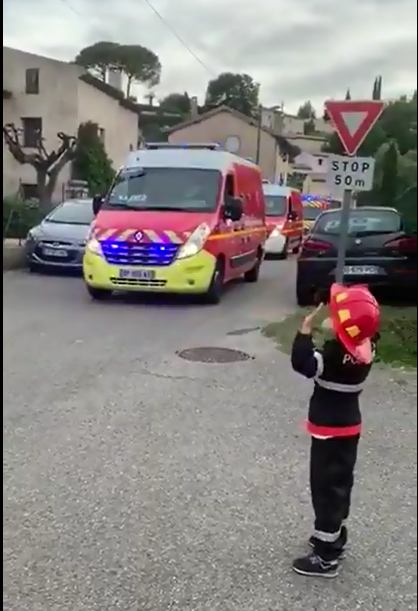 Ce petit garçon a vu son rêve se réaliser. Son papa a demandé aux pompiers de Pegomas de passer pour faire plaisir à un enfant, qui a été très heureux de voir les camions passés.