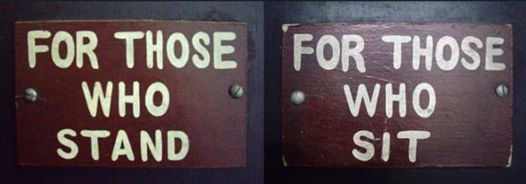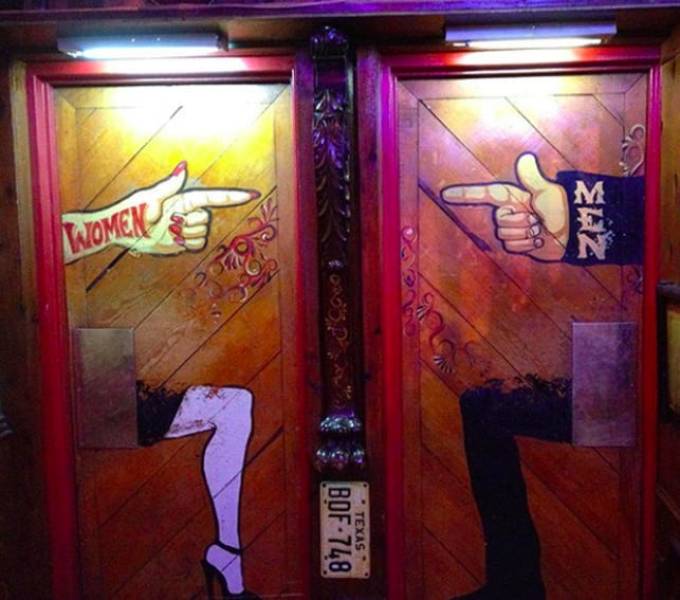 Avez-vous déjà été dans un restaurant « branché » ou « cool ». Si oui, leurs pancartes pour indiquer leur salle de bain sont-elles « uniques » comme ceux de ces images ?