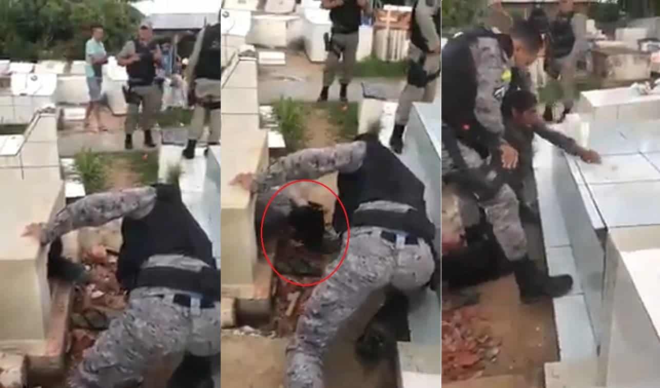 Ce jeune homme vient de perdre son père et n’a pas pu assister à la funéraire parce qu’il travaillait et habitait loin de sa ville. Le jeune homme s’est donc rendu sur les lieux, a pris une partie du béton de la tombe et est entré à l’intérieur avec l’intention de dire au revoir à son père. Mais il ne pouvait pas sortir seul.