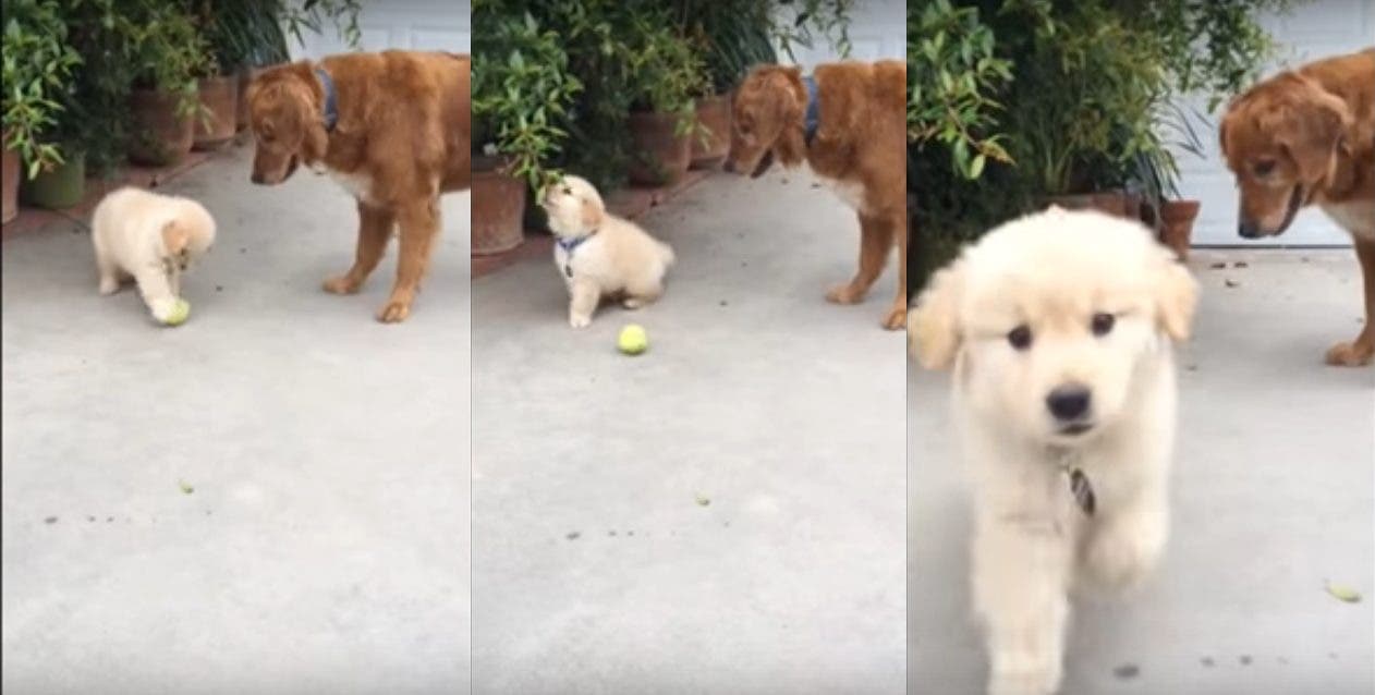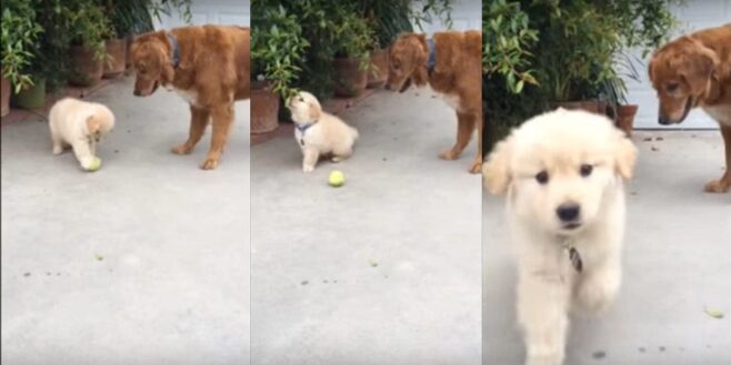 Cette vidéo montre qu’il est juste une question de fraction de seconde et on voit le chiot déjà concentré avec n’importe quoi que ses yeux voient!