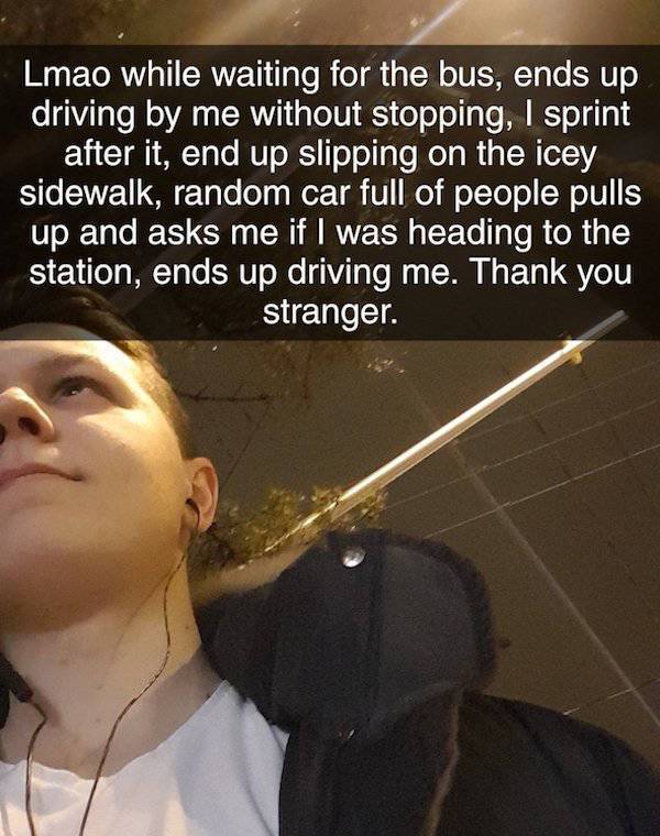 Cette personne est reconnaissante envers cet inconnu qui l’a aidé dans une situation compliquée.