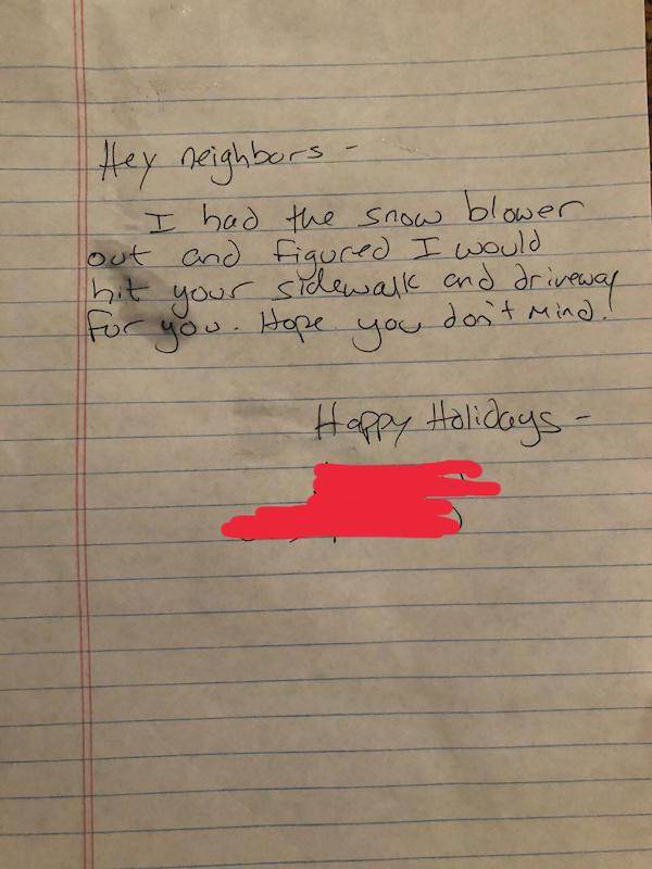 Il a pris le temps de déneiger les allées et trottoirs pour que cela ne dérange pas ses voisins.