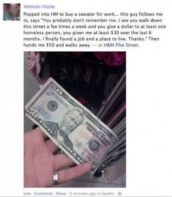 Les artistes sont aussi, à l’image de Lady Gaga. Elle avait donné de l’argent à cet homme sans-abri avec une rose rouge. Un geste très attentionné de sa part.