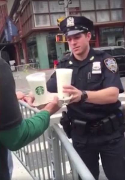 Et il y a ceux qui sont vraiment très attentionnés comme cette personne qui a pris le temps de prendre un café pour le policier.